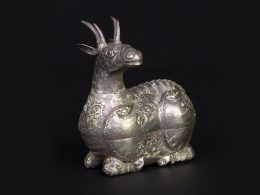 ทำเป็นรูปกวางหมอบ มีเขาสวยงาม ตบแต่งด้วยการดุนและสลักลวดลวดรอบตลับ เปิดใส่ของได้