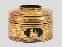 ภาชนะดินเผาวัฒนธรรมบ้านเชียงยุคกลาง ตกแต่งด้วยการเขียนสีแดง เป็นลวดลายรอบตัวภาชนะ