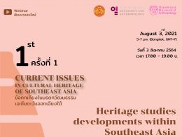 UPCOMING WEBINARAUGUST 3rd, 2021, 5-7 pm. (Bangkok, GMT+7)Current Issues in Cultural Heritage of Southeast Asia:Heritage studies developments within Southeast AsiaSpeakers วิทยากรศาสตราจารย์ ดร....