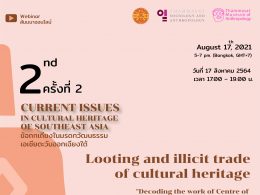 UPCOMING 2nd WEBINARAUGUST 17th, 2021, 5-7 pm. (Bangkok, GMT+7)Current Issues in Cultural Heritage of Southeast Asia:LOOTING AND ILLICIT TRADE OF CULTURAL HERITAGE Speakers วิทยากรสุรเชษฐ์ แก้วสกุล...
