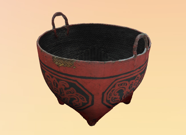 การลงรักส่วนหนึ่งช่วยอุดรอยรั่วซึม และเพื่อเป็นกาวในการทาชาด ภาพรวมของกระบุงชิ้นนี้ น่าจะเป็นงานฝีมือแบบชาวบ้าน