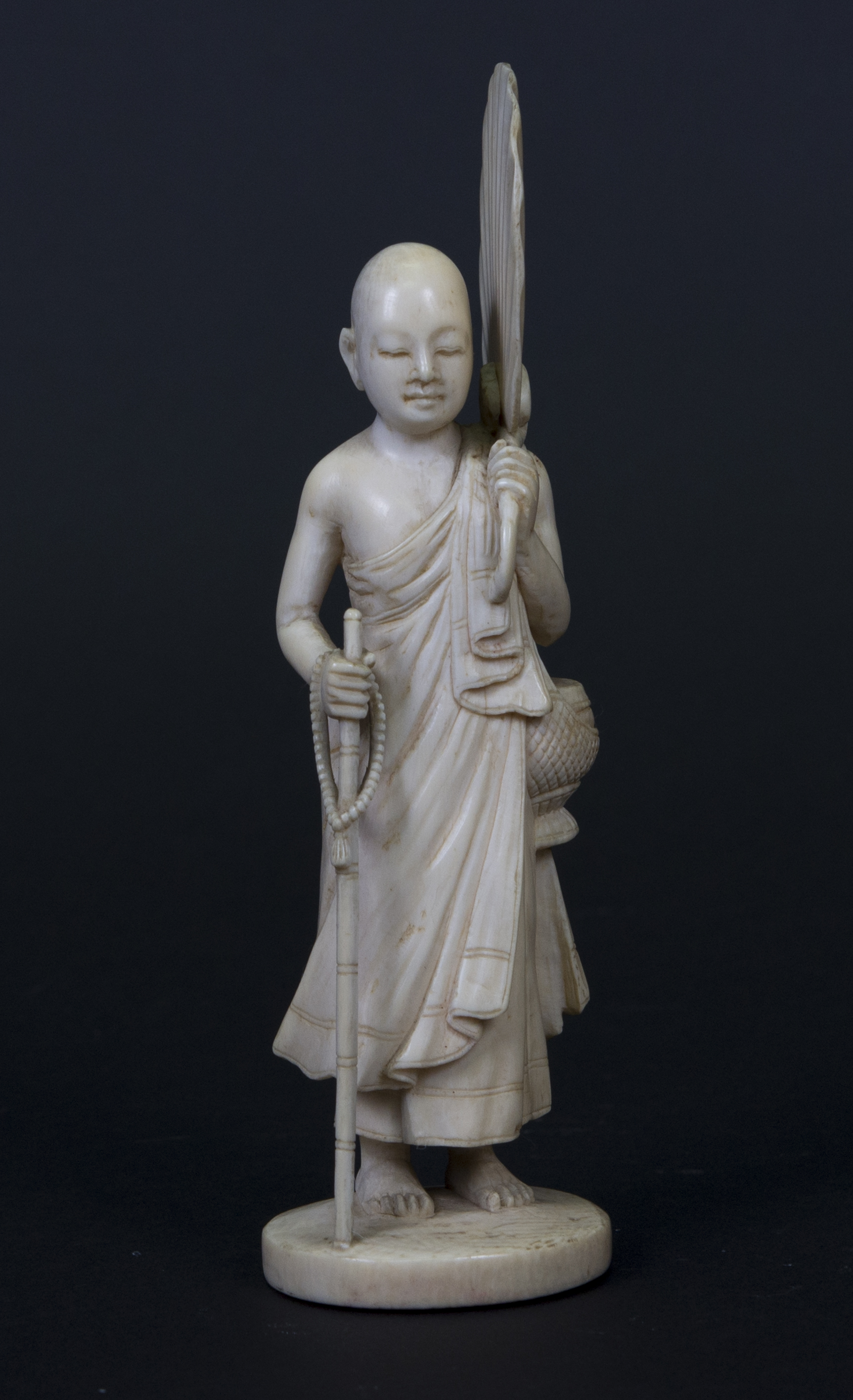 พุทธศตวรรษที่ 25 รูปพระสงฆ์ยืนบนแท่นสะพายย่ามและบาตร