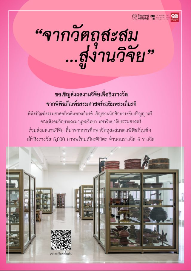 เชิญนักศึกษาที่สนใจร่วมส่งผลงานวิจัย โดยเขียนจากงานวิจัยวัตถุหรือชุดวัตถุจากชุดสะสมของพิพิธภัณฑ์ธรรมศาสตร์เฉลิมพระเกียรติ