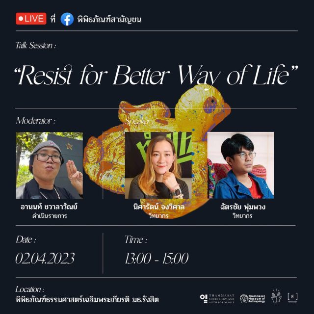 วันอาทิตย์ที่ 2 เมษายน 2566เวลา 13.00-15.00 น.นิทรรศการ “วัตถุพยานแห่งการต่อต้าน | Evidences of Resistance” โดย พิพิธภัณฑ์สามัญชน Museum of Popular History ร่วมกับ พิพิธภัณฑ์ธรรมศาสตร์เฉลิมพระเกียรติ คณะสังคมวิทยาและมานุษยวิทยา มหาวิทยาลัยธรรมศาสตร์ ขอเชิญร่วมกิจกรรม side event ที่ 4เสวนาหัวข้อ “Resist for Better Way of Life”ร่วมสนทนาโดย- นิศารัตน์ จงวิศาล (กลุ่มทำทาง)- ฉัตรชัย พุ่มพวง (สหภาพคนทำงาน)ชวนคุยโดย- อานนท์ ชวาลาวัณย์ ผู้ก่อตั้งพิพิธภัณฑ์สามัญชน ณ พิพิธภัณฑ์ธรรมศาสตร์เฉลิมพระเกียรติ มหาวิทยาลัยธรรมศาสตร์ (ศูนย์รังสิต) และรับชมถ่ายทอดสดได้ที่เพจ พิพิธภัณฑ์สามัญชน #วัตถุพยานแห่งการต่อต้าน#EvidencesofResistance#พิพิธภัณฑ์สามัญชน#พิพิธภัณฑ์ธรรมศาสตร์เฉลิมพระเกียรติ#Kinjaicontemporary ________________ For more information 02 696 6610