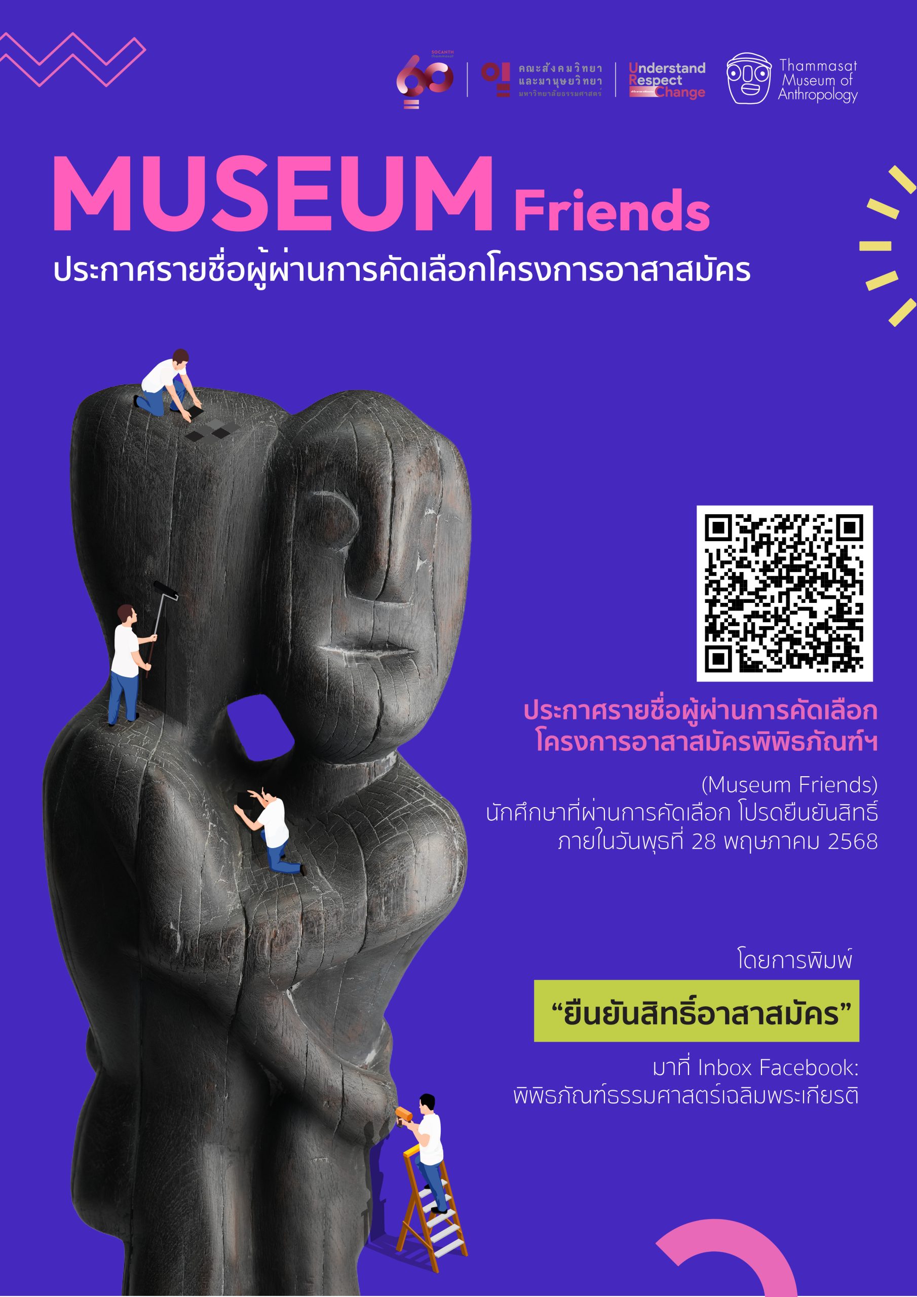 รายชื่อผู้ผ่านการคัดเลือกโครงการอาสาสมัครพิพิธภัณฑ์ธรรมศาสตร์เฉลิมพระเกียรติ (Museum Friends)