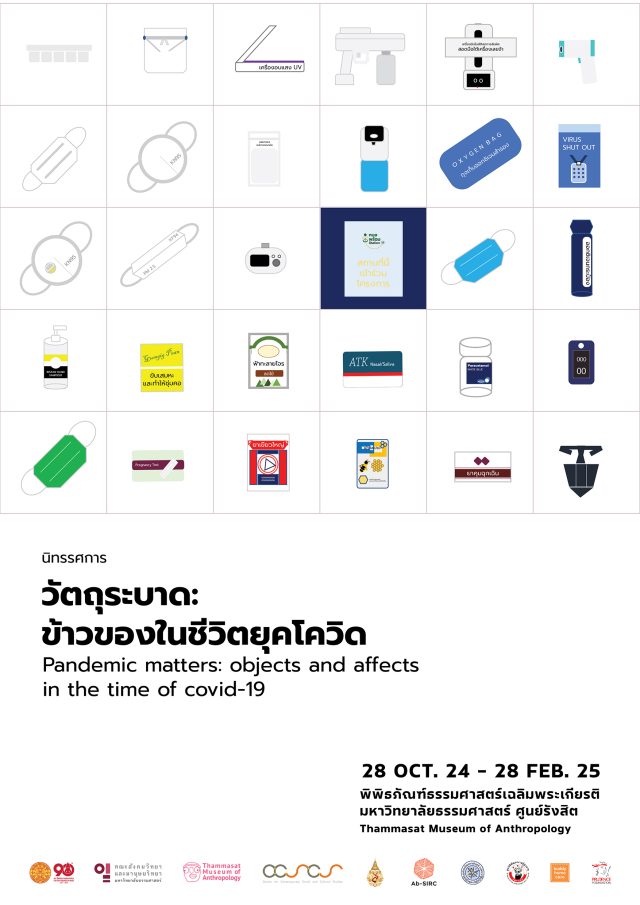 พิพิธภัณฑ์ธรรมศาสตร์เฉลิมพระเกียรติ และศูนย์ศึกษาสังคมและวัฒนธรรมร่วมสมัย คณะสังคมวิทยาและมานุษยวิทยา มหาวิทยาลัยธรรมสาสตร์ ร่วมกับศูนย์วิจัยนวัตกรรมสังคมเชิงพื้นที่ มหาวิทยาลัยแม่ฟ้าหลวง และมูลนิธิพัฒนางานผู้สูงอายุ ขอเชิญชมนิทรรศการ “วัตถุระบาด: ข้าวของในชีวิตยุคโควิด“ ตั้งแต่วันนี้ 28 ตุลาคม 2567 – 28 กุมภาพันธ์ 2568