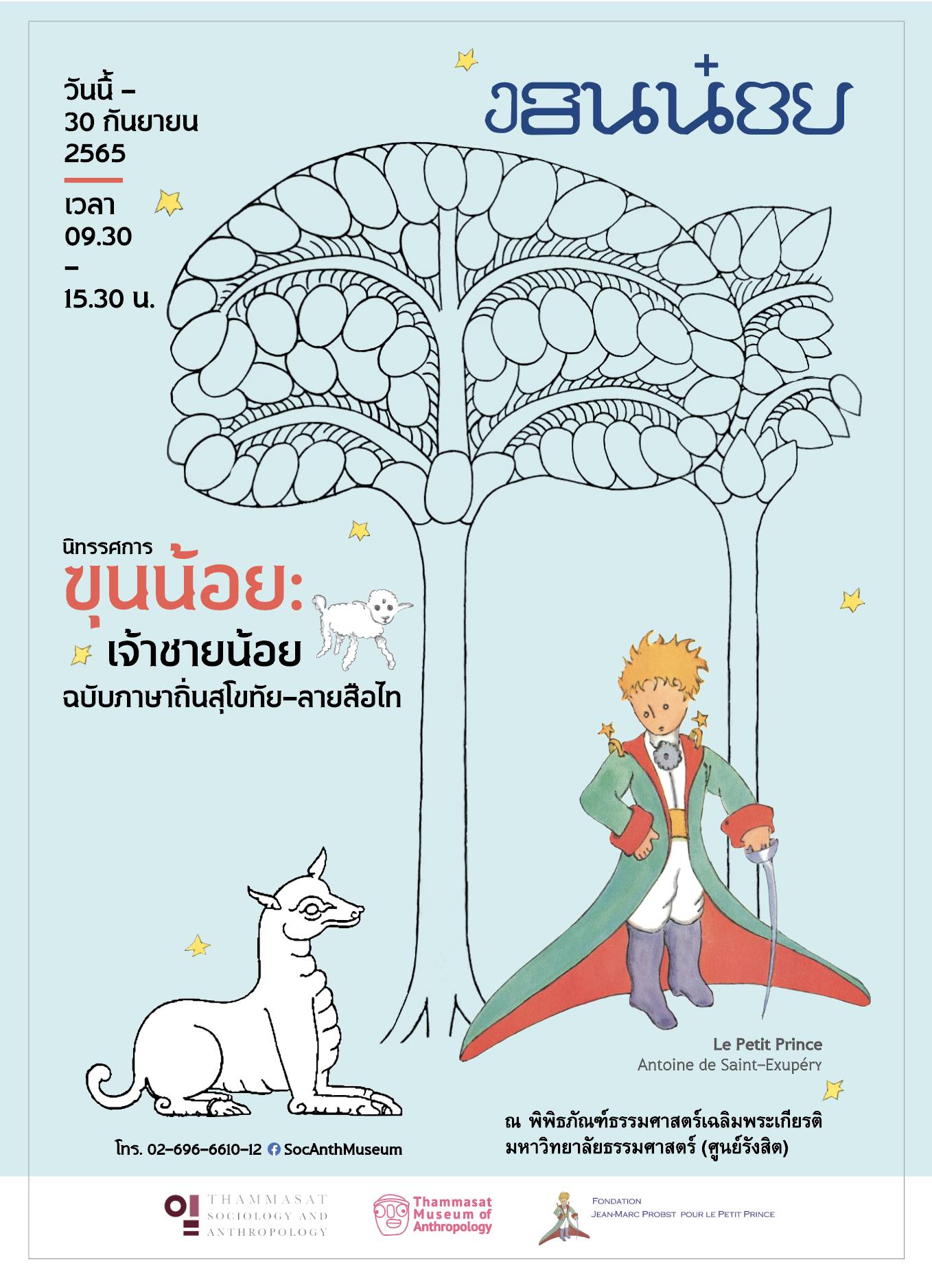 เชิญชมนิทรรศการ ฃุนน้อย : เจ้าชายน้อย ฉบับภาษาถิ่นสุโขทัย -ลายสือไท ได้แล้ววันนี้ ที่พิพิธภัณฑ์ธรรมศาสตร์เฉลิมพระเกียรติ ม.ธรมศาสตร์ ศูนย์รังสิต
