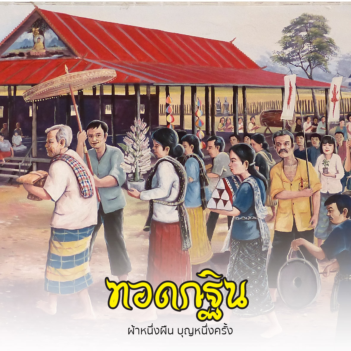 ภาพจิตรกรรมฝาผนัง งานทอดกฐิน จากคลังภาพจิตรกรรมฝาผนัง: อู่ทอง ประศาสน์วินิจฉัย