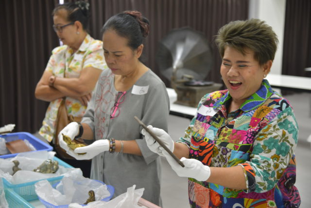 วันที่ 18 กรกฎาคม 2561 บริษัทที่ปรึกษาด้านพิพิธภัณฑ์ มิวเซียม มายส์ (Museum Minds) โดยคุณบัว บุณฑริก เขมาชีวะ ร่วมกับพิพิธภัณฑ์ธรรมศาสตร์เฉลิมพระเกียรติ ร่วมจัดกิจกรรมภายใต้โครงการวิจัย “การใช้วัตถุของพิพิธภัณฑ์เป็นสื่อในการเสริมสร้างสุขภาวะสำหรับกลุ่มผู้สูงอายุ : โครงการนำร่อง ณ พิพิธภัณฑ์ธรรมศาสตร์เฉลิมพระเกียรติ โดยมีวัตถุประสงค์ของการวิจัย เพื่อทดลองนำพิพิธภัณฑ์และคอลเลคชั่นของพิพิธภัณฑ์ในประเทศไทยมาเป็นสื่อในการส่งเสริมสุขภาวะให้กับผู้สูงอายุ โดยกิจกรรมภาคเช้าประกอบไปด้วยการ กิจรรม Check in ด้วยรูปภาพ ให้เลือกภาพที่ตนเองรู้สึกเชื่อมโยงด้วยมากที่สุด /กิจกรรม Object handling : ทำความรู้จักวัตถุของพิพิธภัณฑ์ฯ โดยให้เลือกชิ้นที่ตัวเองรู้สึกว่าเชื่อมโยงกับความทรงจำในวัยเด็กมากที่สุด หรือ ชิ้นที่อยากรู้จักมากที่สุด และเปิดพื้นที่ให้แต่ละคนพูดคุยแลกเปลี่ยนกัน ภาคบ่าย ประกอบไปด้วยกิจกรม การใช้ดินปั้น โดยให้ปั้นสิ่งของที่เป็นภาชนะสำหรับเก็บความทรงจำที่สำคัญของตัวเอง หรือ สิ่งของที่มีคุณค่ากับตน และพูดคุยแลกเปลี่ยนกับกลุ่มถึงผลงานที่ปั้นออกมา
