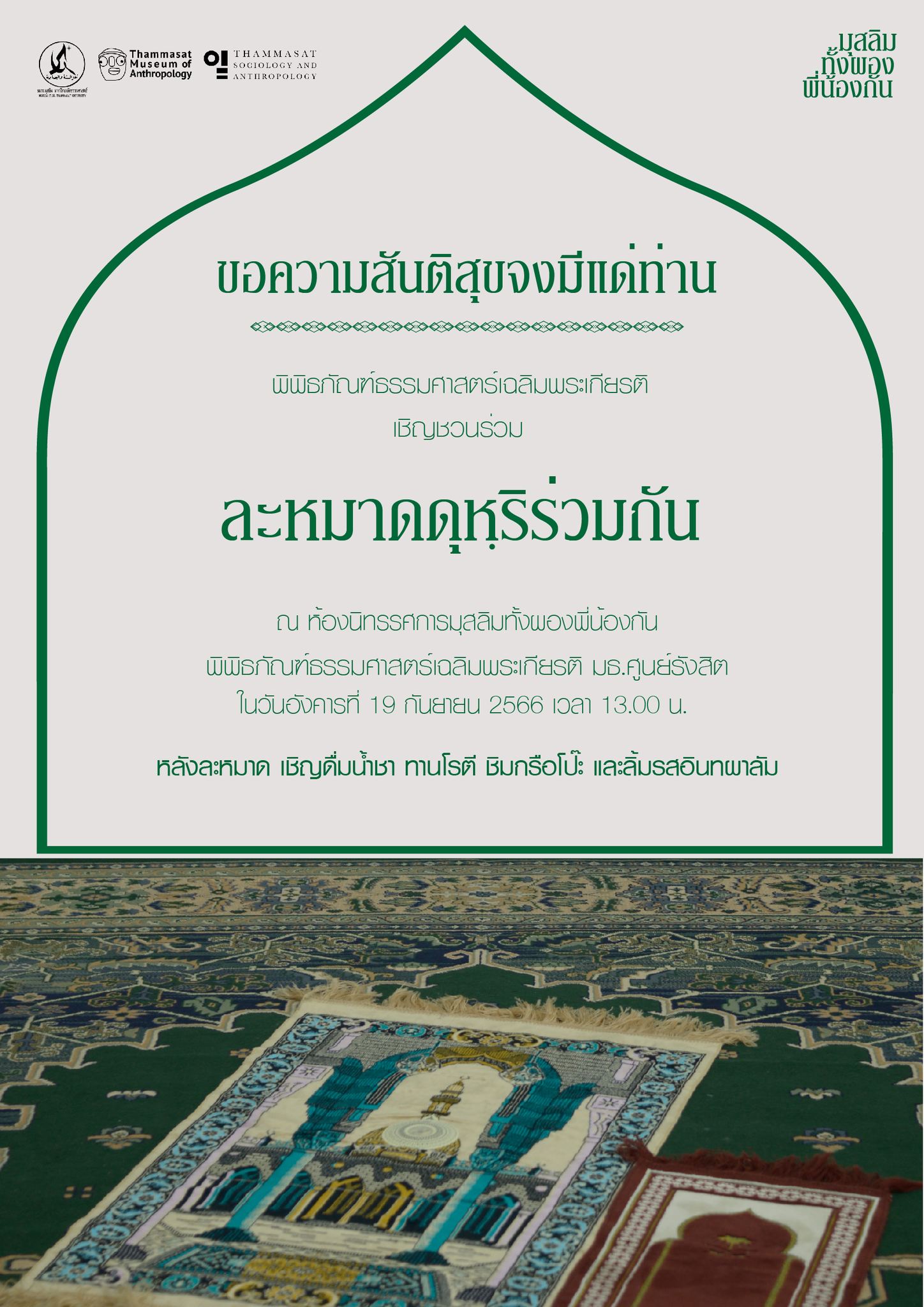เชิญชวนพี่น้องมุสลิม มธ. ละหมาดดุหฺริร่วมกัน ( เวลา 13.00 น.)